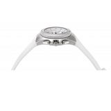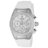 Technische Information: TECHNOMARINE Titanium Reef white/silver, quartz movement, diameter: 34 mm, stainless steel case with stone settings, dial combination white/silver, luminova indices and markers, chronograph- & stopping function, white rubber strap.